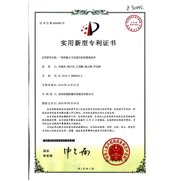 03一種緯編大衛(wèi)衣提花機的菱角組件